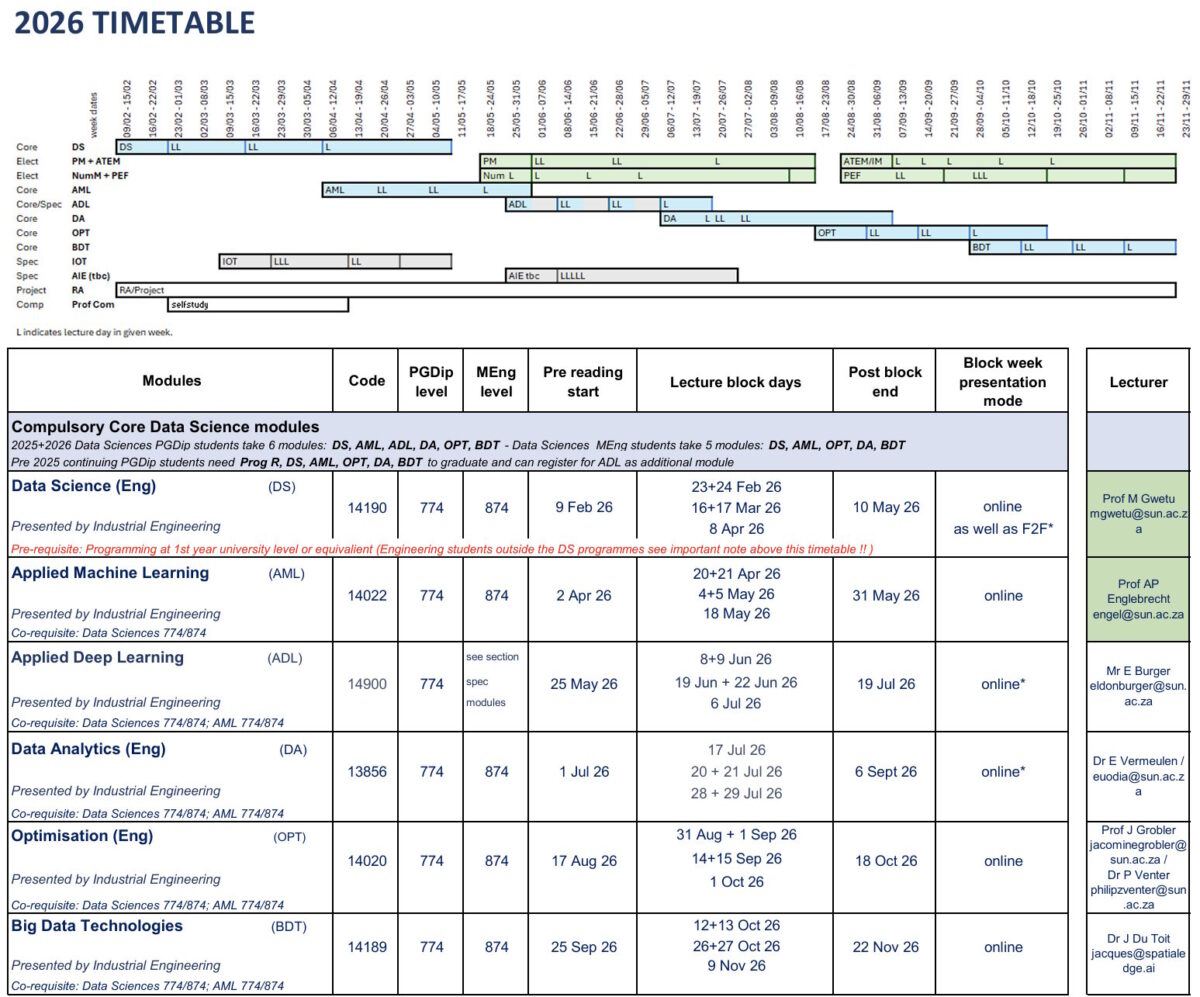 The Department of Industrial Engineering is hosting two data science related programmes, namely the MEng (Structured) and the Postgraduate Diploma.